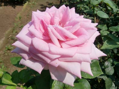 ソフトピンクの剣弁高芯咲き。咲き始めの端正に揃った形もすばらしく、満開時には中心がロゼット状になる。
